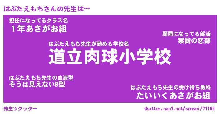 | ヘコむあだ名 | 『はぶふぇ~』『つくし』『はぶっ子』 |