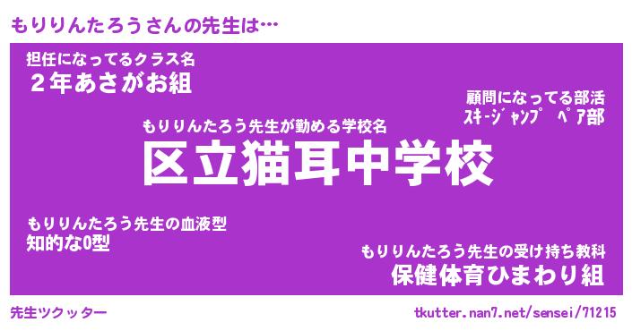 | ヘコむあだ名 | 『もりにー』『なまこ酢』『もりっぺ』 |