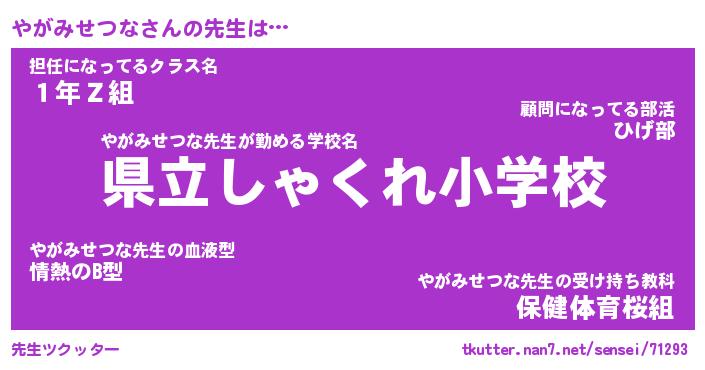 | 伝説のあだ名 | 『不死鳥のスナイパーやがみせつな』 |