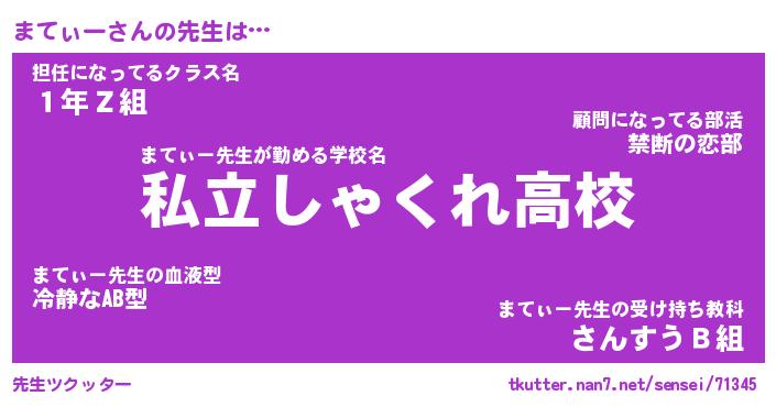 | 伝説のあだ名 | 『伝説のスナイパーまてぃー』 |