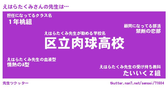 | 意味不明あだ名 | 『ペロリンえはらたくみ』 |