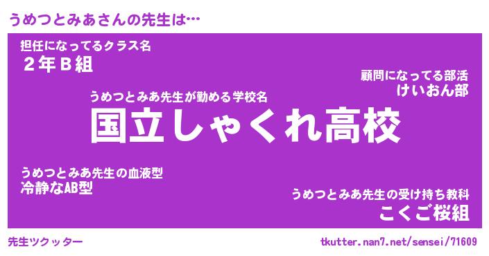 | 肩書あだ名 | 『うめつとみあ御曹司』 |