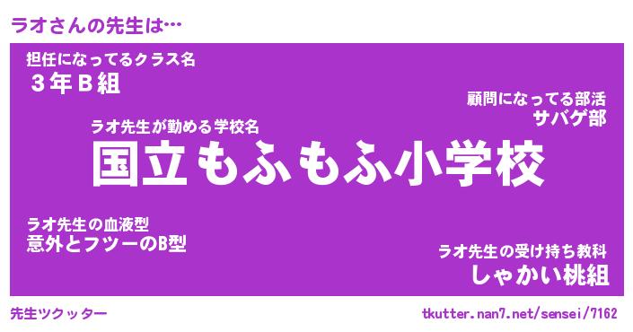 | ヘコむあだ名 | 『ラオにゅー』『つくし』『ラオっ子』 |