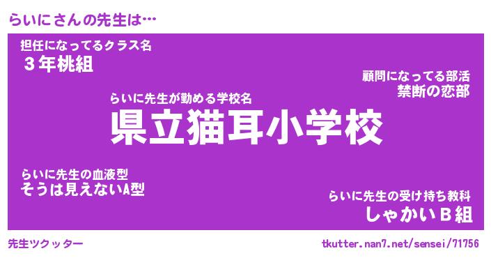| ヘコむあだ名 | 『らいにー』『レバニラ』『らいお』 |