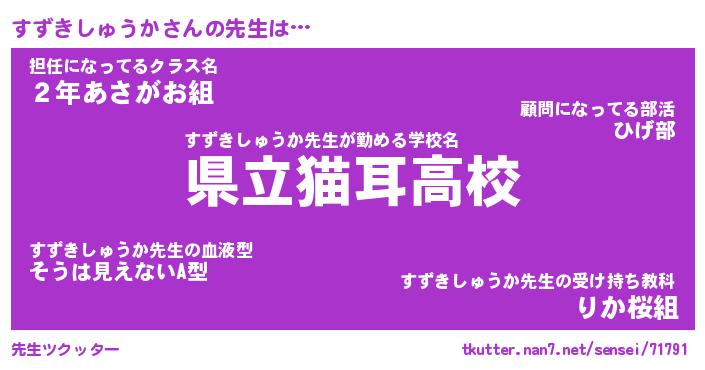 | ヒーロー風カッコイイあだ名 | 『スーパースズキシュウカ』 |