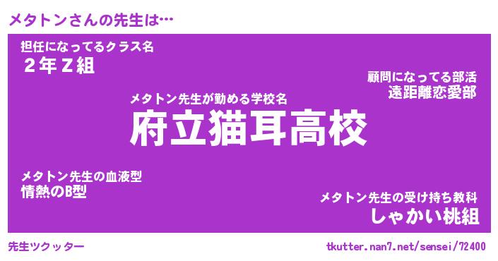 | ファンタジー風あだ名 | 『メタフェル』『エターナルメタトンー』 |