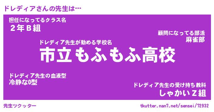 | 恥ずかしいあだ名 | 『プリティードレディア』『ドレっちょ』 |