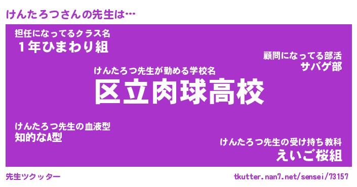 | ファンタジー風あだ名 | 『ケンフェル』『エターナルケンタロツー』 |