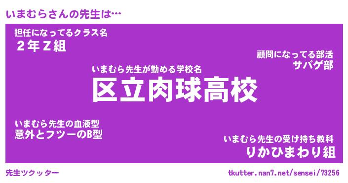 | 意味不明あだ名 | 『ペロリンいまむら』『永久保存いまむら』 |