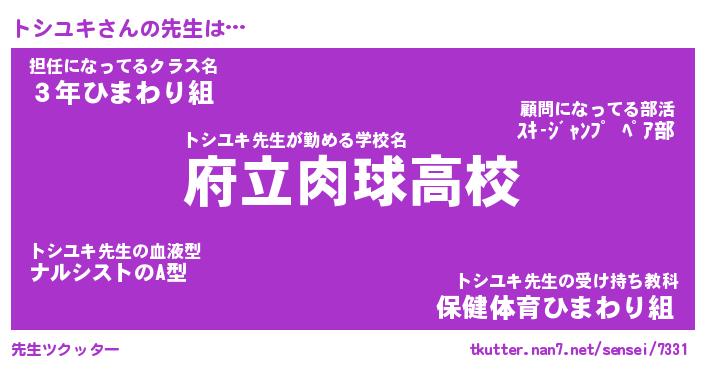 | 意味不明あだ名 | 『ペロリントシユキ』『永久保存トシユキ』 |