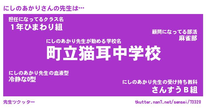 | ヘコむあだ名 | 『にしにー』『つくし』『にしお』 |