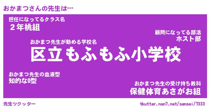 | 意味不明あだ名 | 『ペロリンおかまつ』『永久保存おかまつ』 |