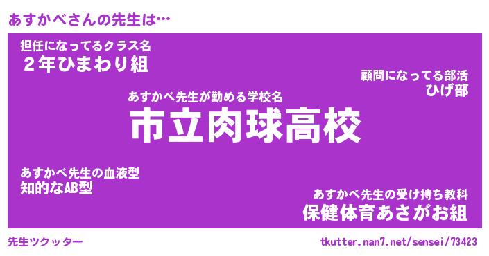 | ヘコむあだ名 | 『あすふぇ~』『なまこ酢』 |