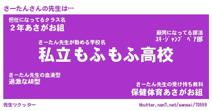 | 男性向けラノベタイトル風あだ名 | 『さーたんの憂鬱』 |