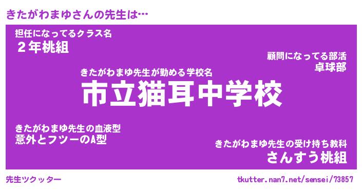 | 恥ずかしいあだ名 | 『プリティーきたがわまゆ』『きたっちょ』 |