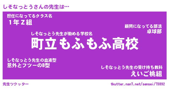| ヘコむあだ名 | 『しそにゅー』『牛乳』『しそぷりん』 |