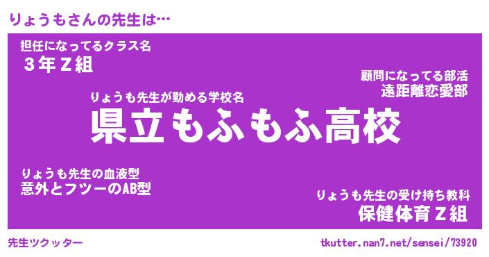 | ファンタジー風あだ名 | 『リョフェル』『エターナルリョウモー』 |