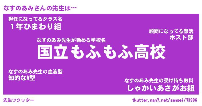 | ヘコむあだ名 | 『なすにゅー』『つくし』『なすっぺ』 |