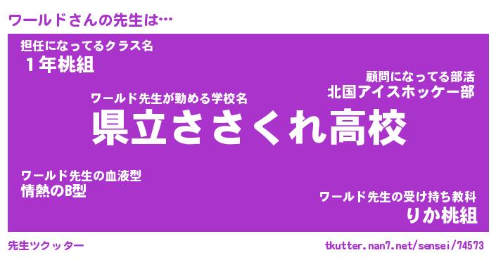 | 男性向けラノベタイトル風あだ名 | 『ワールドの憂鬱』 |