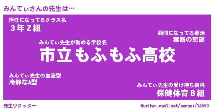 | 意味不明あだ名 | 『ペロリンみんてぃ』『永久保存みんてぃ』 |