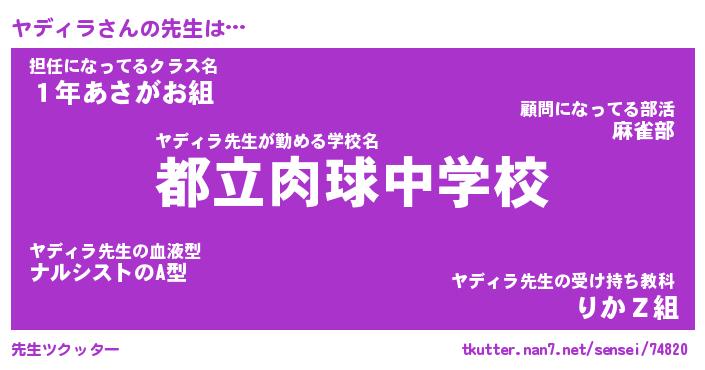 | 意味不明あだ名 | 『ペロリンヤディラ』『永久保存ヤディラ』 |