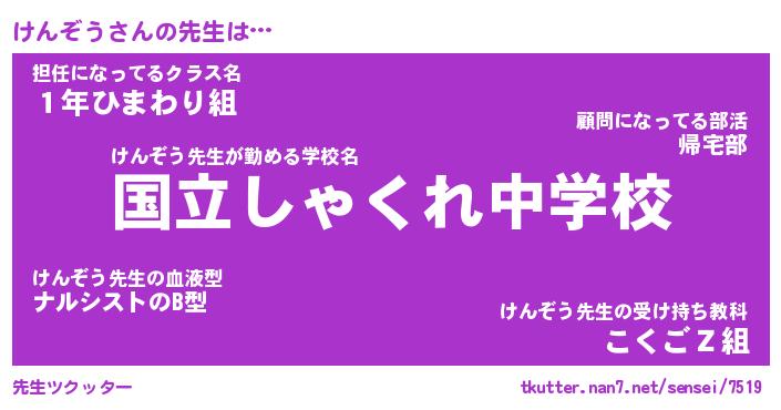 | 意味不明あだ名 | 『ペロリンけんぞう』『永久保存けんぞう』 |