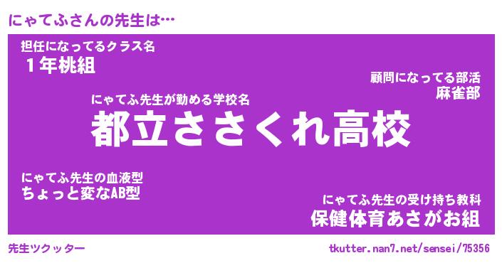 | 意味不明あだ名 | 『ペロリンにゃてふ』『永久保存にゃてふ』 |