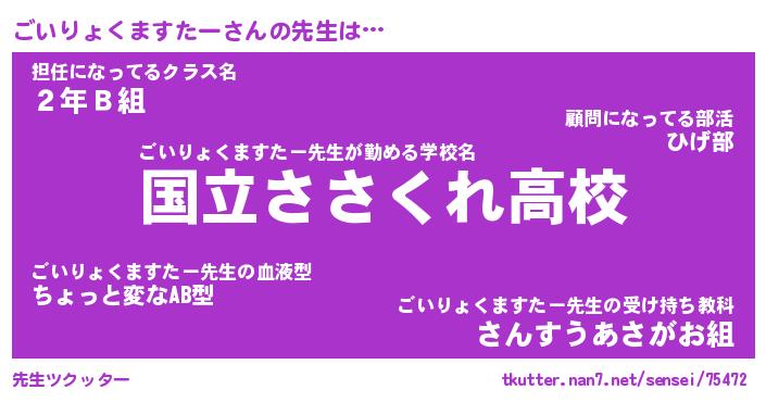 | ヒーロー風カッコイイあだ名 | 『スーパーゴイリョクマスター』 |