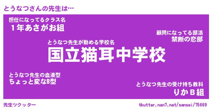 | ヘコむあだ名 | 『とうにー』『つくし』『とうお』 |