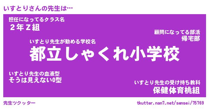 | 意味不明あだ名 | 『ペロリンいすとり』『永久保存いすとり』 |