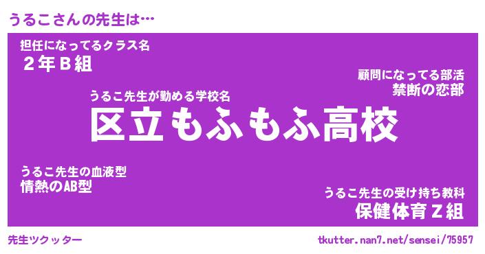 | ヘコむあだ名 | 『うるにゅー』『なまこ酢』『うるお』 |