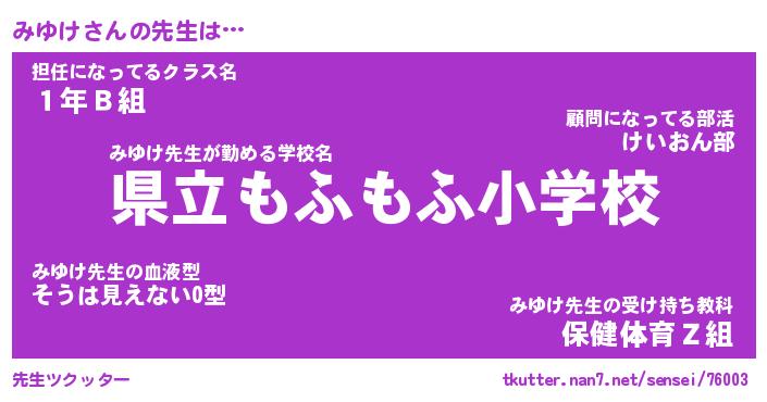 | ヘコむあだ名 | 『みゆにゅー』『なまこ酢』『みゆお』 |
