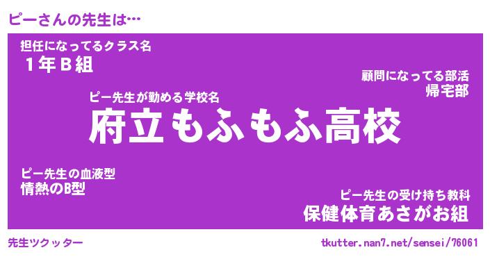 | ファンタジー風あだ名 | 『ピーフェル』『エターナルピーー』 |