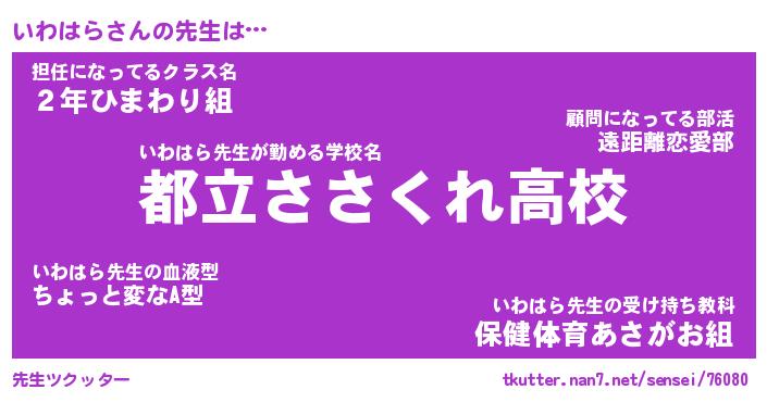 | 意味不明あだ名 | 『ペロリンいわはら』『永久保存いわはら』 |