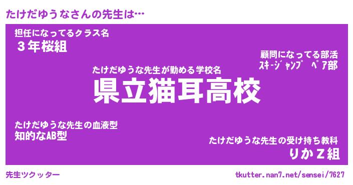 | ヘコむあだ名 | 『たけにー』『豆乳』『たけお』 |