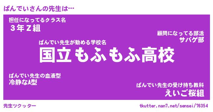 | 意味不明あだ名 | 『ペロリンぱんでい』『永久保存ぱんでい』 |
