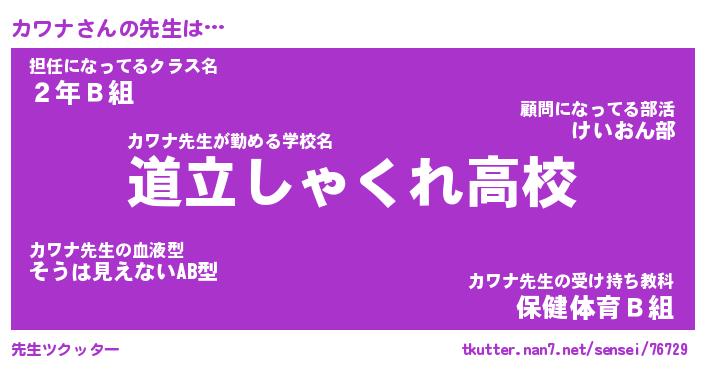 | 意味不明あだ名 | 『ペロリンカワナ』『カワナフォーエバー』 |