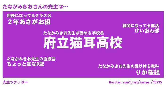 | ヒーロー風カッコイイあだ名 | 『スーパータナカミキオ』『魔戒騎士タナ』 |