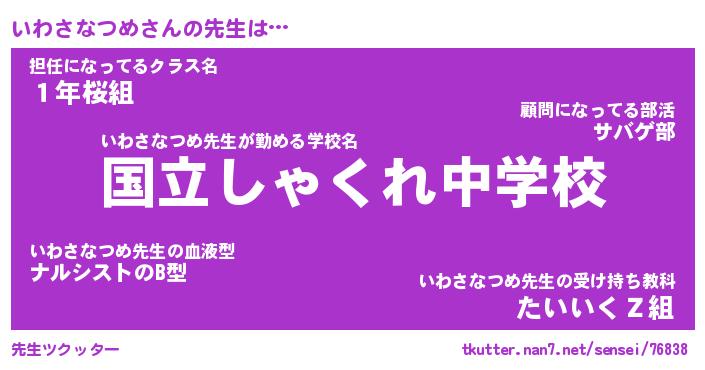 | ヘコむあだ名 | 『いわっふぃ~』『つくし』『いわを』 |