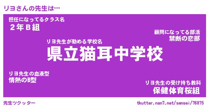 | ファンタジー風あだ名 | 『リヨフェル』『エターナルリヨー』 |