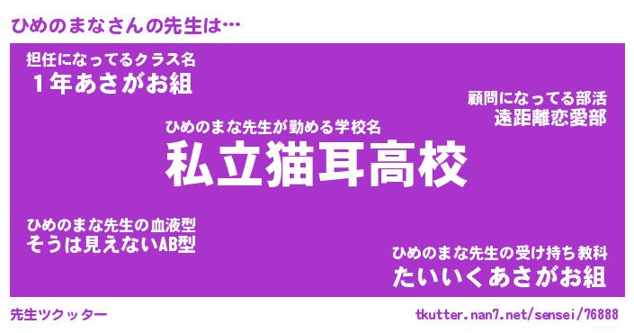 | ファンタジー風あだ名 | 『ヒメフェル』『エターナルヒメノマナー』 |
