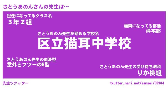 | ヒーロー風カッコイイあだ名 | 『スーパーサトウアノン』『天弓騎士サト』 |