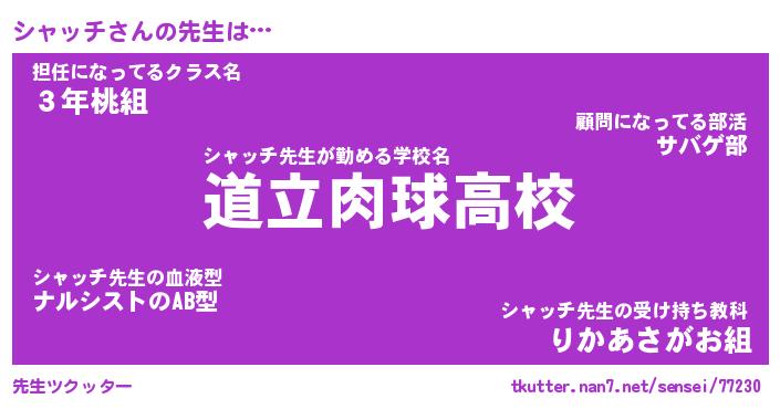 | 意味不明あだ名 | 『ペロリンシャッチ』『永久保存シャッチ』 |