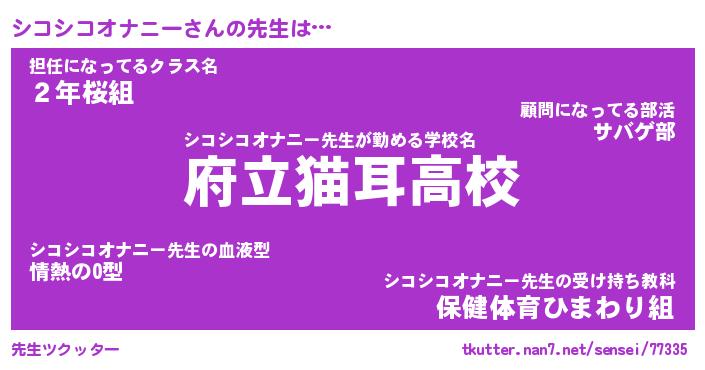 | ヘコむあだ名 | 『シコにー』『なまこ酢』『シコっ子』 |
