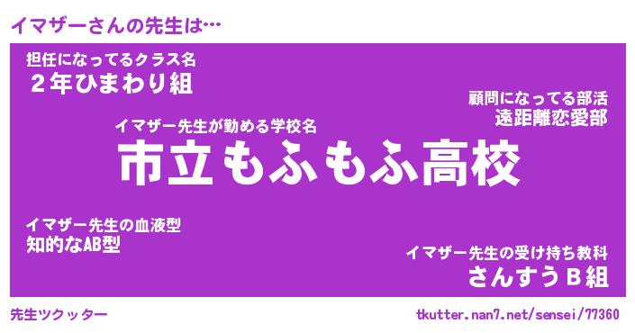 | 意味不明あだ名 | 『ペロリンイマザー』『永久保存イマザー』 |