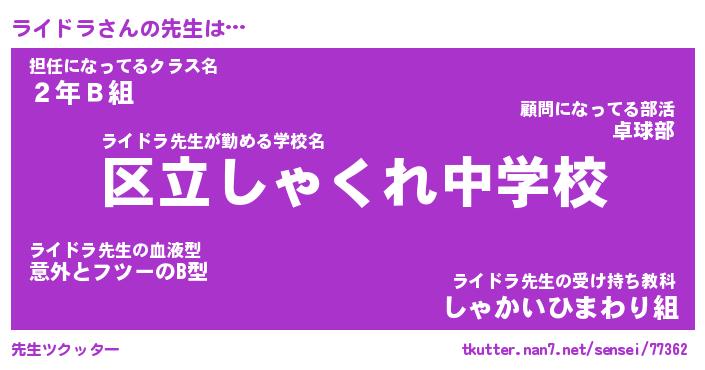 | 意味不明あだ名 | 『ペロリンライドラ』『永久保存ライドラ』 |
