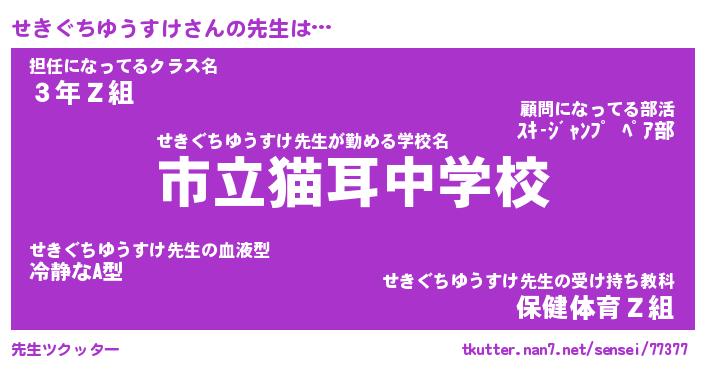 | 意味不明あだ名 | 『ペロリンせきぐちゆうすけ』 |