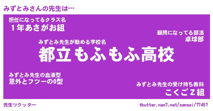 | ファンタジー風あだ名 | 『ミズフェル』『エターナルミズトミー』 |