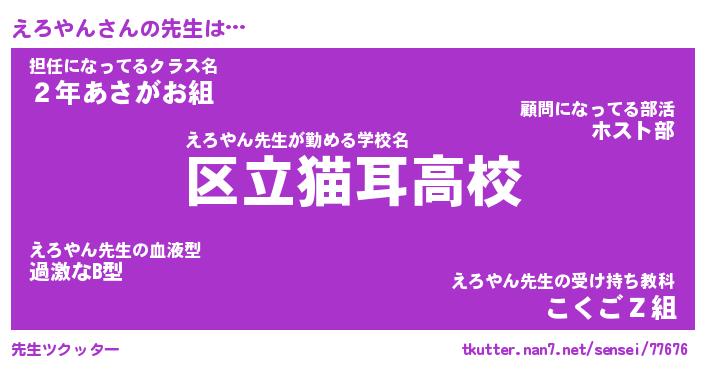 | 意味不明あだ名 | 『ペロリンえろやん』『永久保存えろやん』 |
