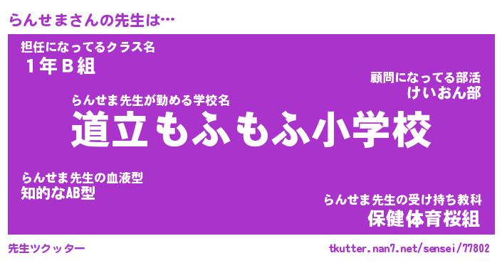 | 意味不明あだ名 | 『ペロリンらんせま』『永久保存らんせま』 |
